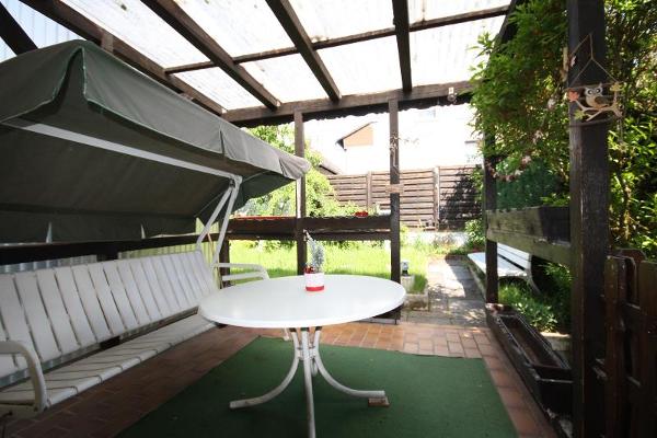 Oil central heating (2003), welded tank, insulating windows, garage, balcony, terrace, garden, garden shed, patio
