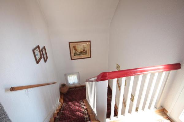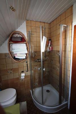 Upstairs are three bedrooms and a bathroom with tub and shower. From the hallway you can reach the balcony.