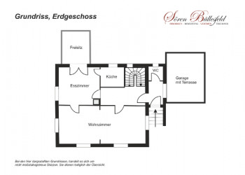 On the ground floor you can reach the house hallway via the entrance area in front of it. There is the guest toilet. On the ground floor there are currently two rooms, a living room and a bedroom, as well as a dining room and the kitchen. The living room and the bedroom can be connected to form one large living room in just a few simple steps. See also floor plan sketches.